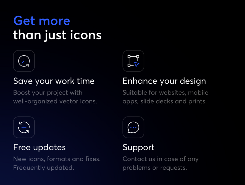 The set is designed to save your time and enhance your design - no matter if it's website, mobile app, slide deck or print design.